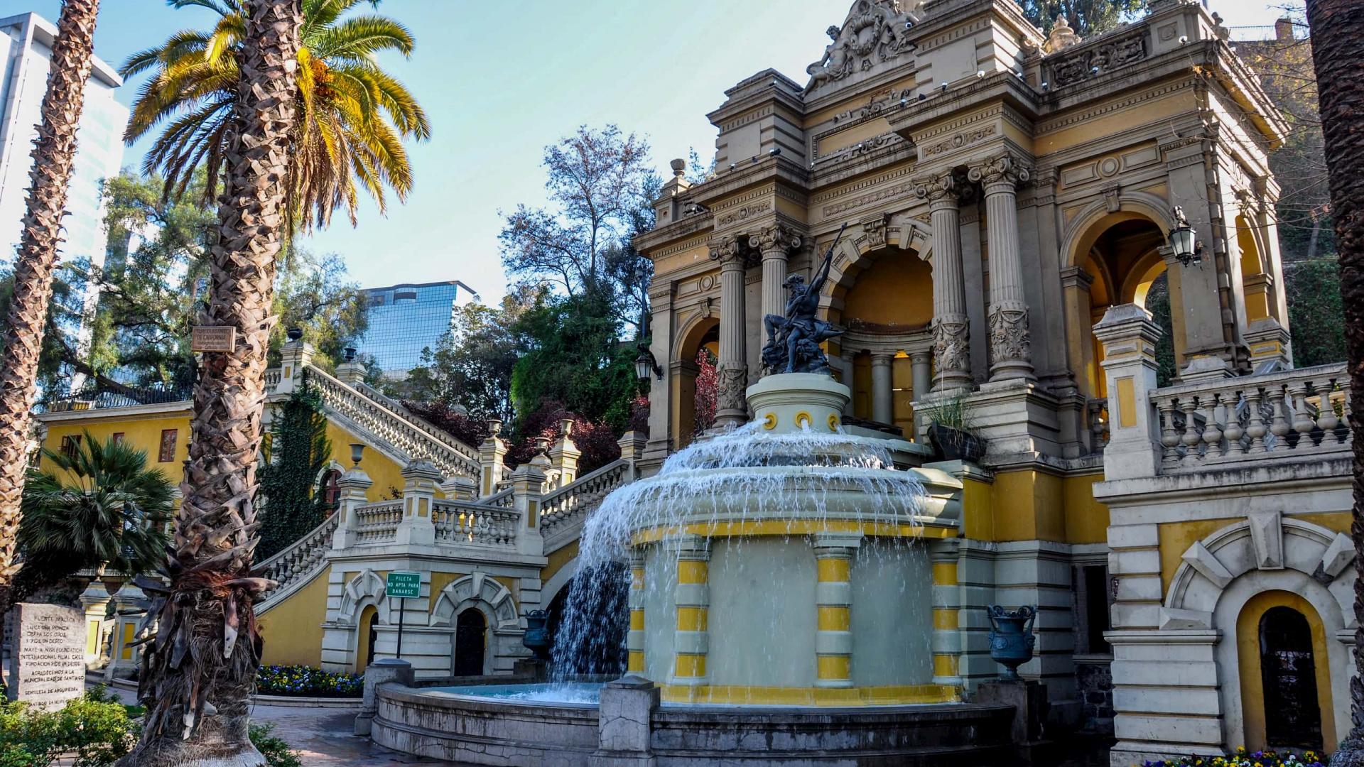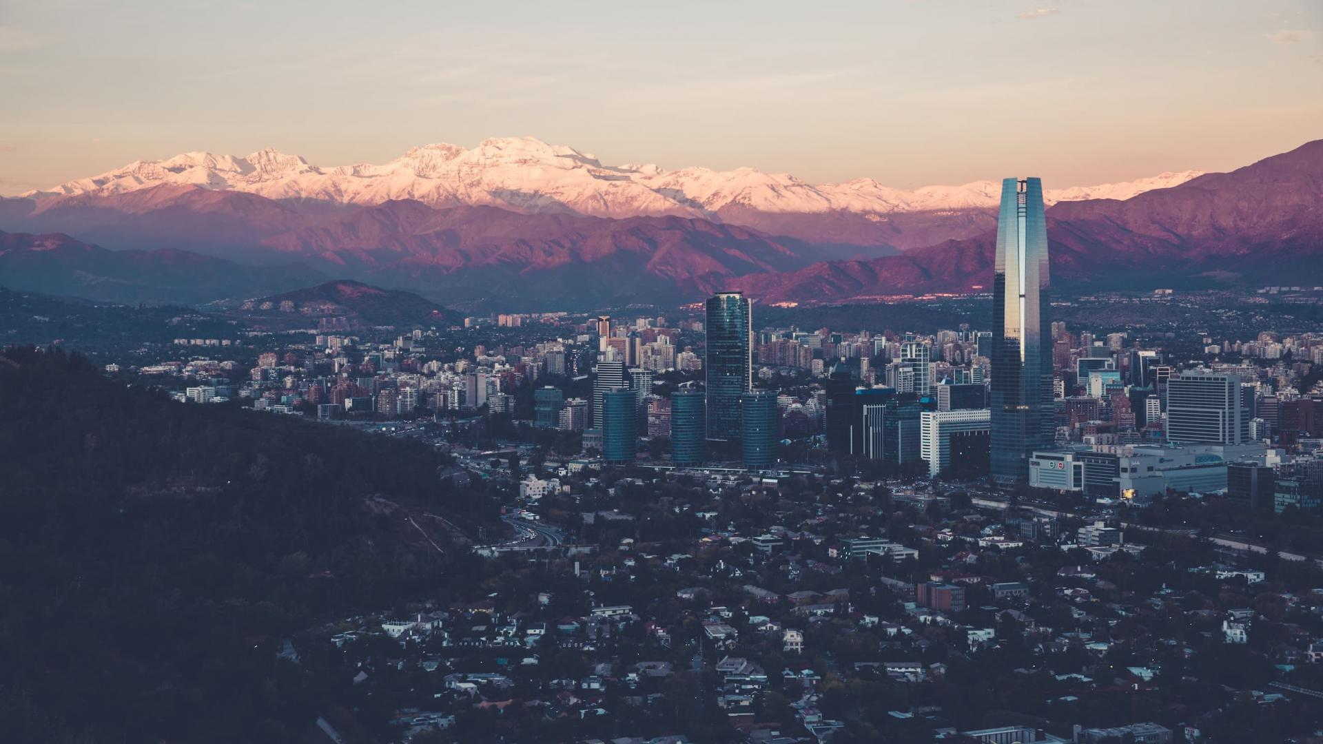 La capital de Chile, situada en la parte central del país en la precordillera andina junto al río Mapocho.