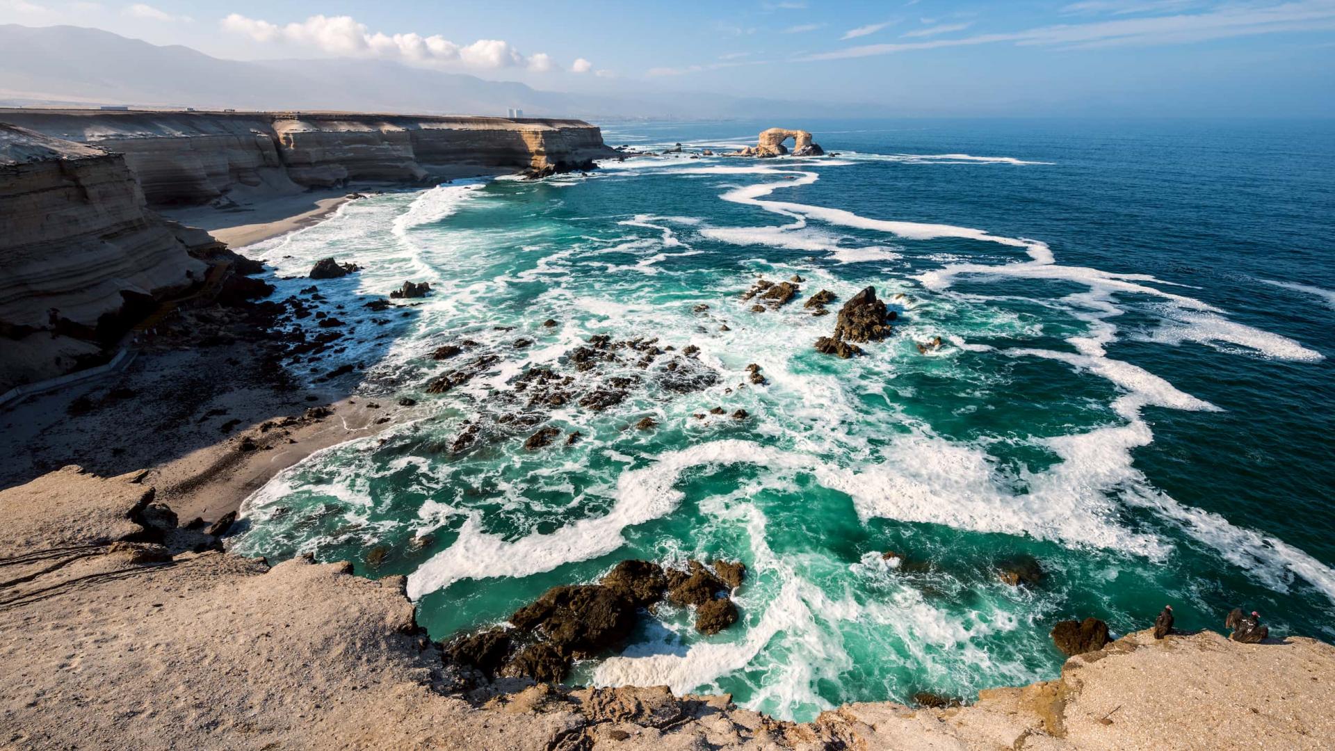 La costa acantilada en la Región de Antofagasta con el arco La Portada.