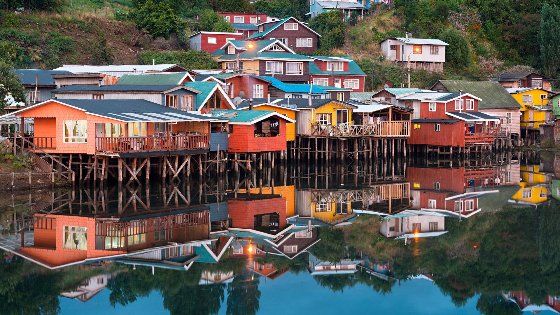 Las viviendas construidas sobre palos en la ciudad de Castro en la isla de Chiloé.