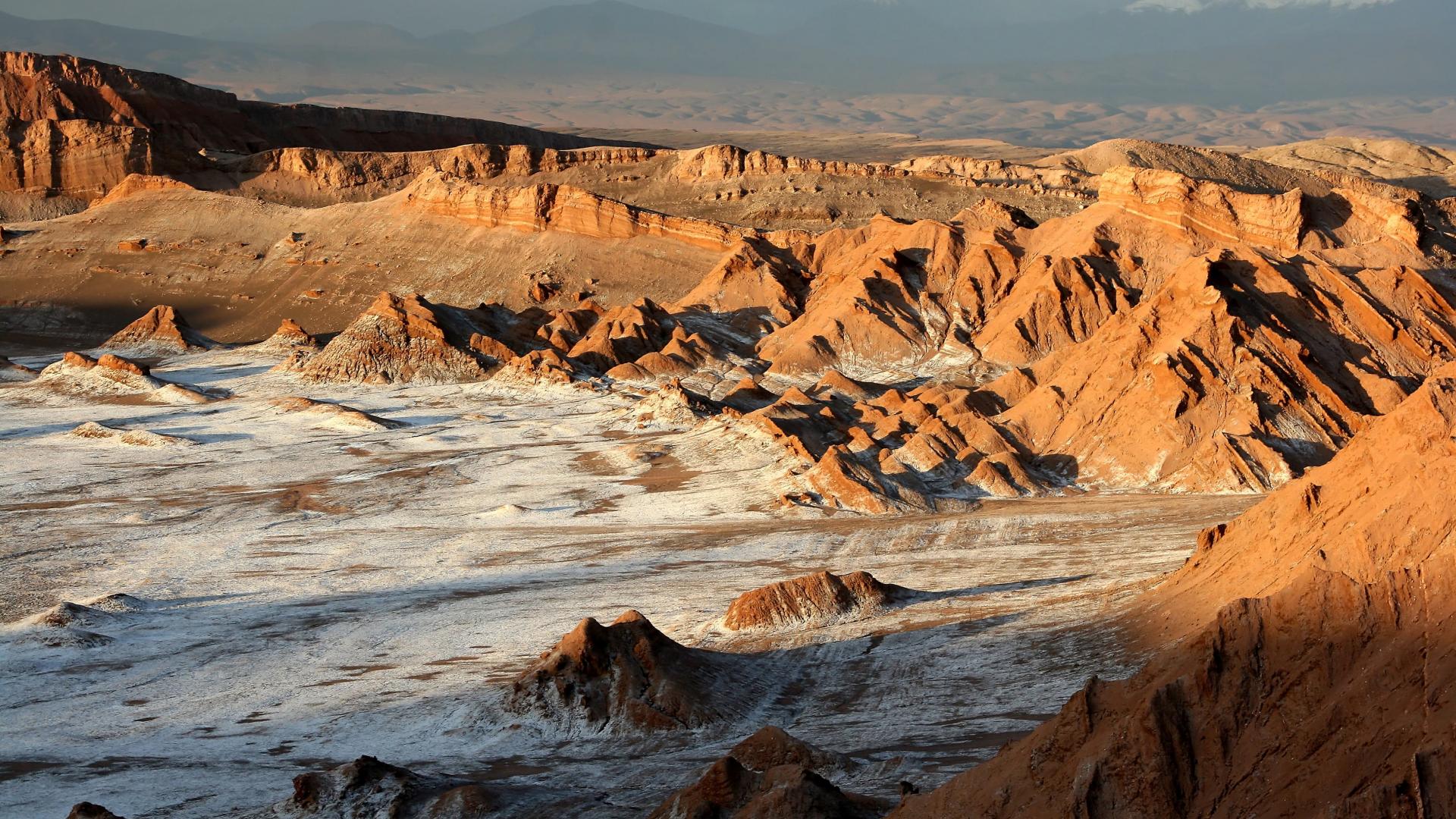 El valle de la Luna en el desierto de Atacama. Tiene una longitud de 450 km y un ancho de 100 km. Formado por arena y piedras.