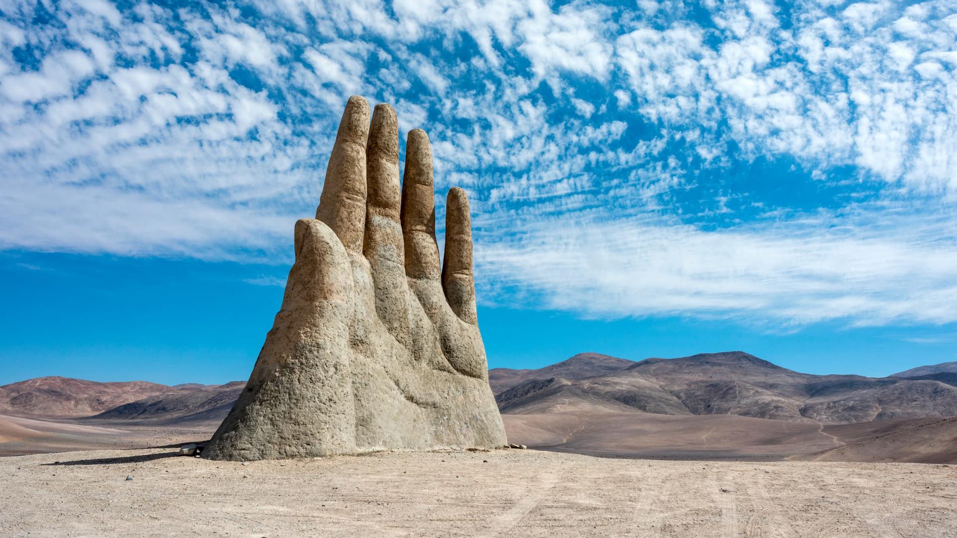 Una escultura en el desierto de Atacama realizada por el escultor Mario Irarrázabal. Tiene 11 metros de altura.