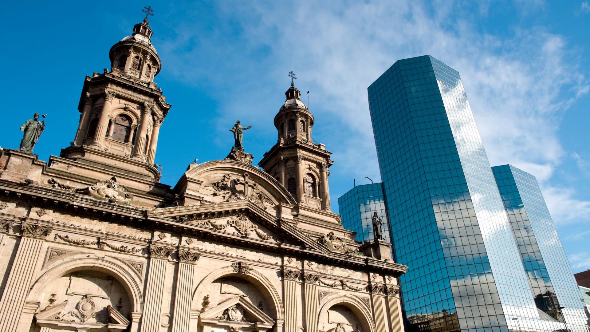 La catedral del siglo XVIII ubicada en la Plaza de Armas, centro histórico de Santiago.